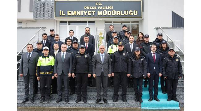 Düzce Valisi Sayın Mehmet Makas, Düzce İl Emniyet Müdürlüğünü ziyaret etti. Ziyaret kapsamında tören mangasını ve emniyet personelini selamlayan Vali Makas, ardından Şeref Defterini imzaladı.